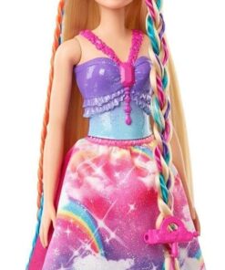 Unleash fairytale hairstyling fun with the Barbie Dreamtopia Twist ?n Style Princess doll! This 11.5-inch blonde Barbie princess inspires endless creative expression with her magical hair features.