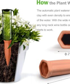 Simple to Use: Just insert a filled wine bottle (or similar bottle with a narrow neck) into the terracotta spike, then insert the spike into the plant’s soil. The porous terracotta slowly releases water as the soil dries, preventing over or under-watering.