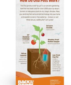 Effortless Watering: Say goodbye to daily watering chores! The Back to the Roots Terracotta Olla Pot self-watering system provides up to 1 week of consistent hydration for your plants.