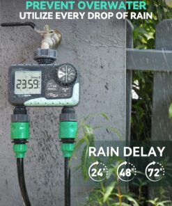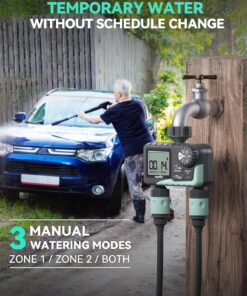 Dual-Zone Control: Independently manage watering schedules for two separate areas of your yard or garden, optimizing water usage for different plant needs.