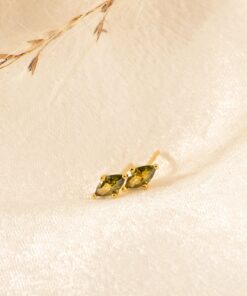 Marquise Gemstone Design: The unique marquise gemstone setting showcases the peridot’s elongated shape, maximizing its light reflection and creating a sophisticated, eye-catching design.