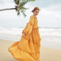 Boho Maxi Dress Long Sleeve Linen Beach Dress – Women’s Full Length Bohemian Gown