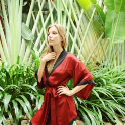 Burgundy Silk Robe for Women – Handmade Bridesmaid Robe – Short Silk Nightgown – Item for Her
