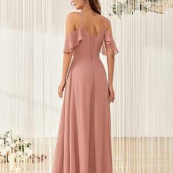 Cold Shoulder Chiffon Bridesmaid Dress Spaghetti Strap Slit Formal Party Gown Dymaisei