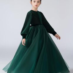 Girls Velvet Maxi Dress Long Sleeve – Elegant Flower Girl Dress for Party Wedding (4-16 Years)