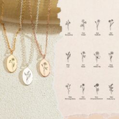Personalized Birth Flower Name Necklace – Custom Gold Name Jewelry – Mother’s Day Item