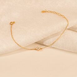 Dainty Diamond Flower Bracelet – Gold/Silver Minimalist Charm Bracelet – Bridesmaid Item