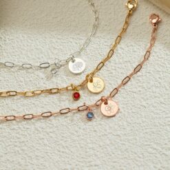 Personalized Birth Flower Bracelet – Engraved Name & Birthstone, Wildflower Jewelry Item for Her, Bridesmaid Items