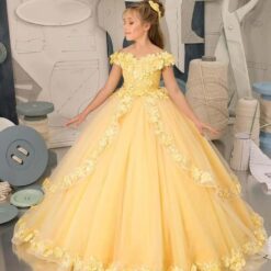 Flower Girl Dress Off Shoulder Communion Gown – Party Pageant Ball Gown