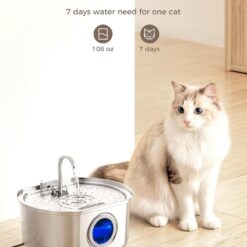 Stainless Steel Cat Water Fountain 108oz/3.2L – Automatic Pet Drinking Dispenser Bowl for Indoor Cats