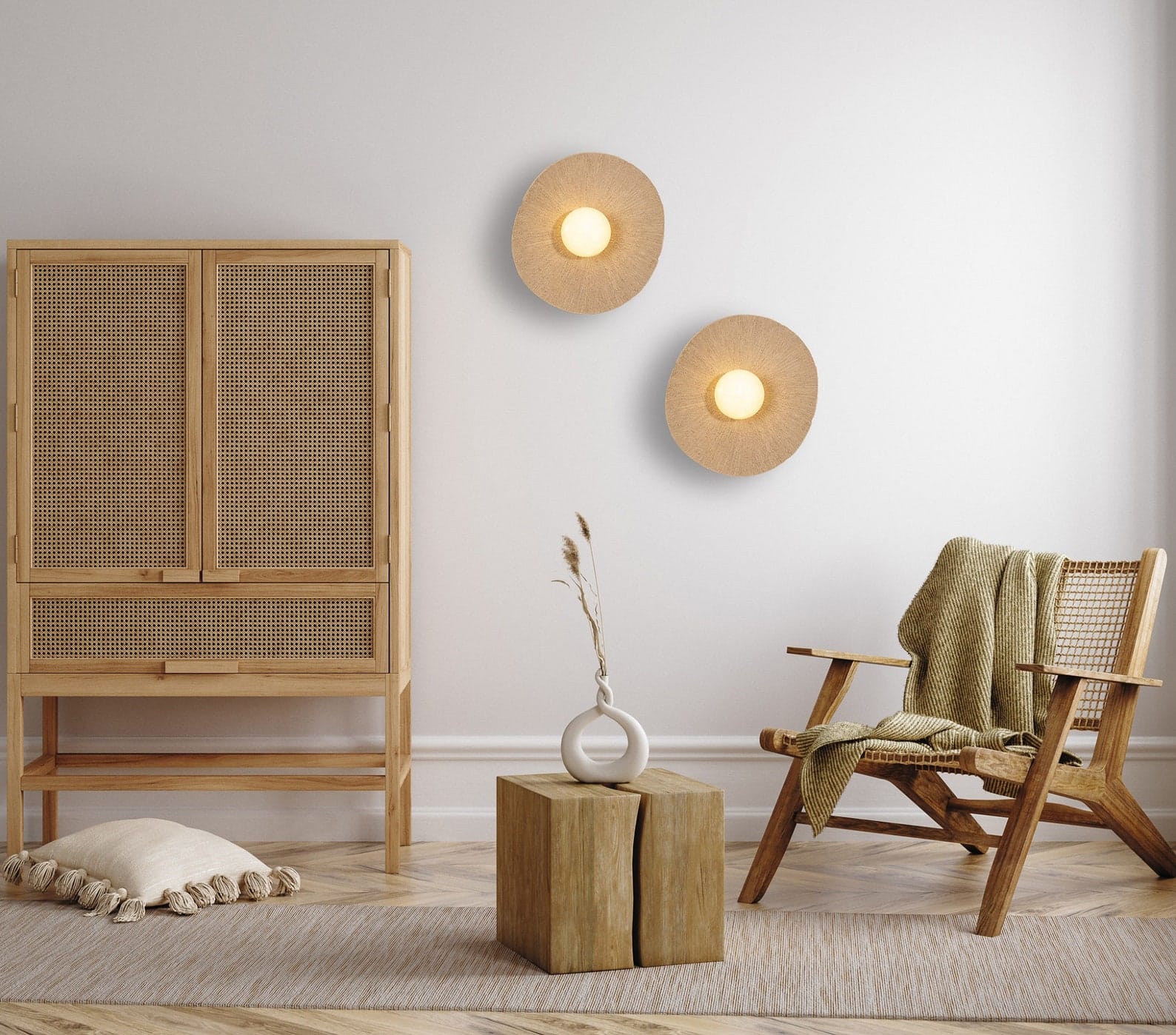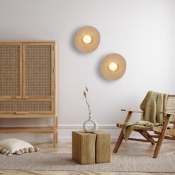 “ Handcrafted Artistry: Each 15″ beige wall lamp is meticulously handmade from natural clay, showcasing unique textures and a warm, inviting aesthetic.