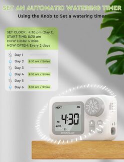 Customizable Watering Schedule: The digital programmable water timer allows you to set precise watering schedules based on your plants’ individual needs. Choose watering frequency and duration for optimal hydration.