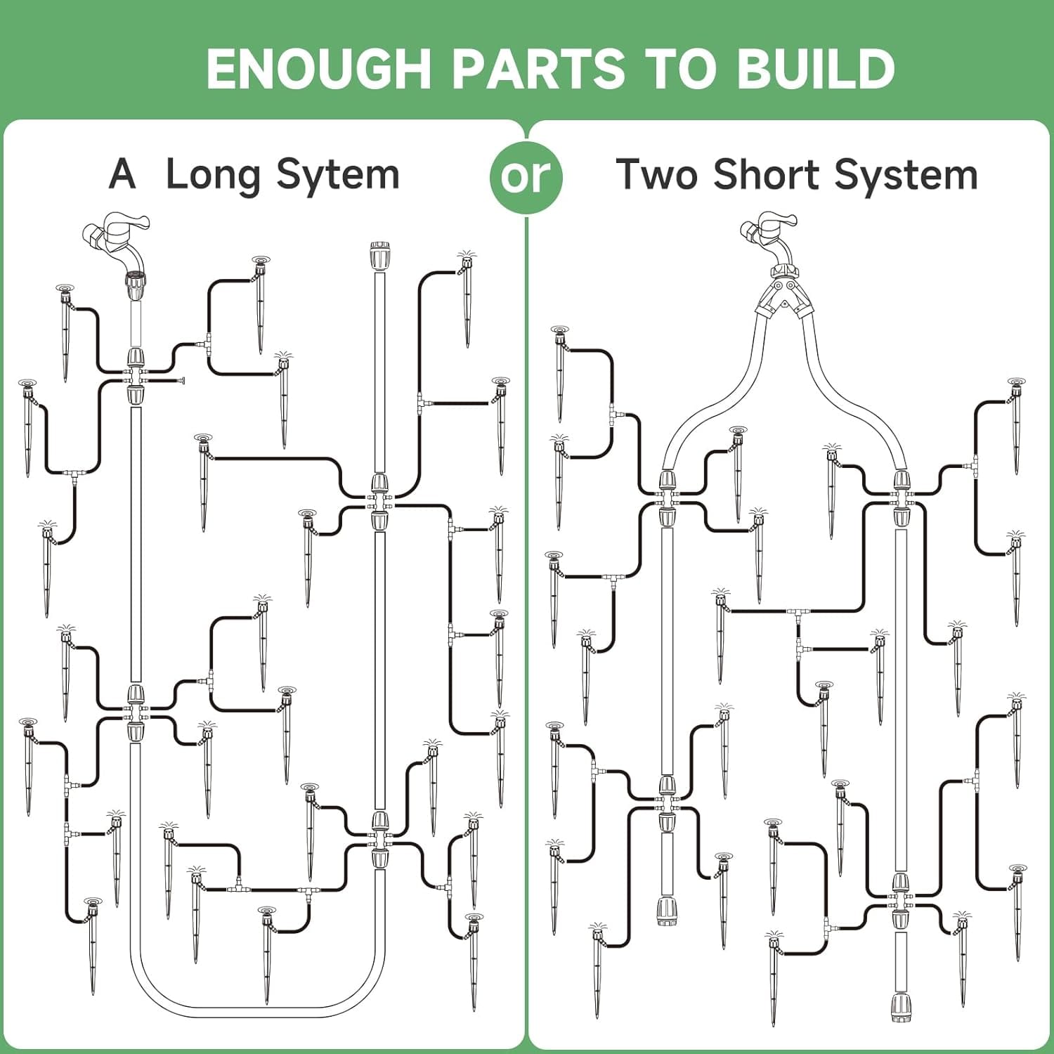 Versatile Tubing: Includes both 1/2 inch and 1/4 inch irrigation tubing to accommodate various plant spacing and watering needs.
