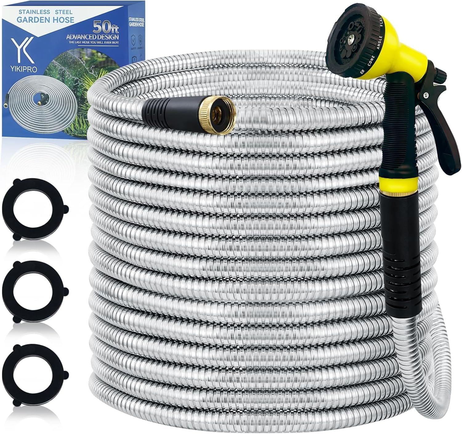 Durable & Long-Lasting: Crafted from premium stainless steel, this 50ft metal garden hose resists rust, corrosion, and punctures, for years of reliable use. Say goodbye to flimsy hoses!