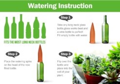 Simple to Use: Just insert a filled wine bottle (or similar bottle with a narrow neck) into the terracotta spike, then insert the spike into the plant’s soil. The porous terracotta slowly releases water as the soil dries, preventing over or under-watering.