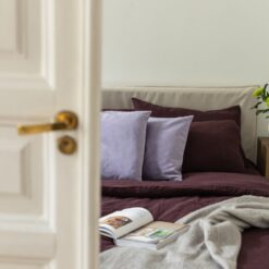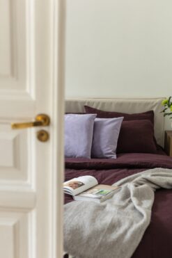 “ Embrace Luxurious Comfort: Drift into a serene slumber with our Dark Purple Modern Linen Bed Set. Crafted from premium, natural organic flax linen, this set offers unparalleled softness and breathability for a restful night’s sleep.