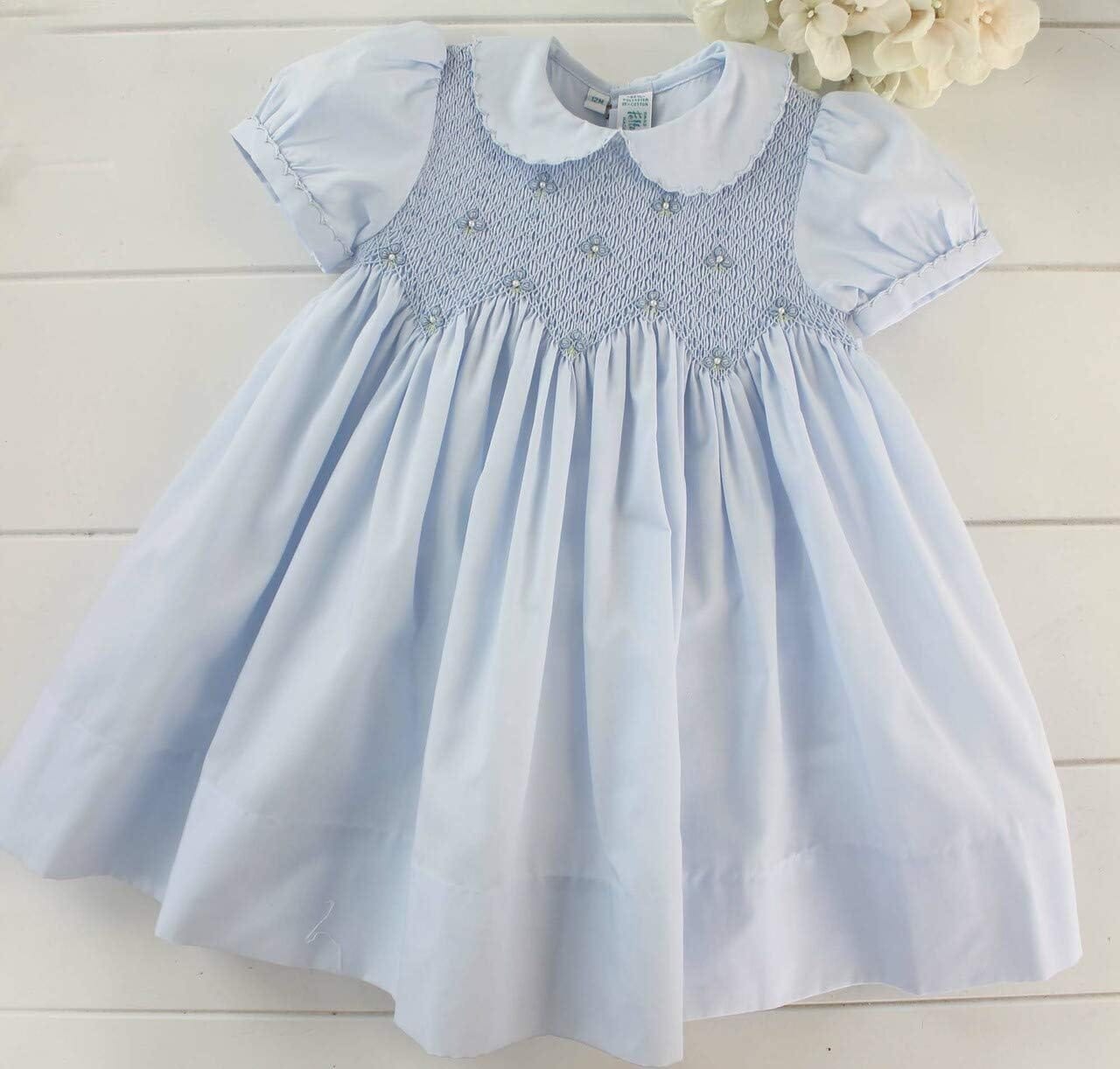 Feltman Brothers Girls Blue Smocked Portrait Dress Peter Pan Collar – Newborn to 4T