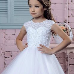 Elegantly Designed: Crafted with delicate lace, this First Holy Communion dress exudes timeless grace and sophistication, perfect for her special day.