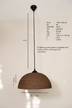 “ Artisan Crafted Excellence: Elevate your space with this unique 19″ handmade ceramic pendant chandelier. Each piece is meticulously crafted, showcasing the beauty of natural textures and a warm brown hue.