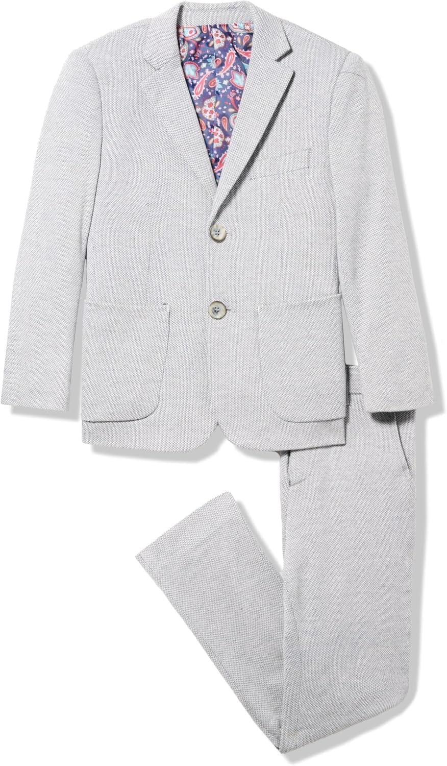 Sharp & Stylish: Elevate his look with this Isaac Mizrahi slim-fit suit, featuring a sophisticated birdseye texture. Perfect for special occasions, school events, or making a lasting impression.