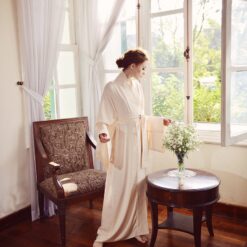 “Indulge in luxurious comfort with our exquisite Silk Kimono Robe. Crafted from premium, lightweight silk, this full-length robe drapes beautifully, offering an unparalleled feeling of softness against your skin.