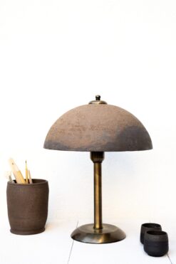 Mushroom Lamp Ceramic Bedside Table Lamp – Mid Century Modern Pottery Desk Light – Brown Abstract Pedestal Chandelier