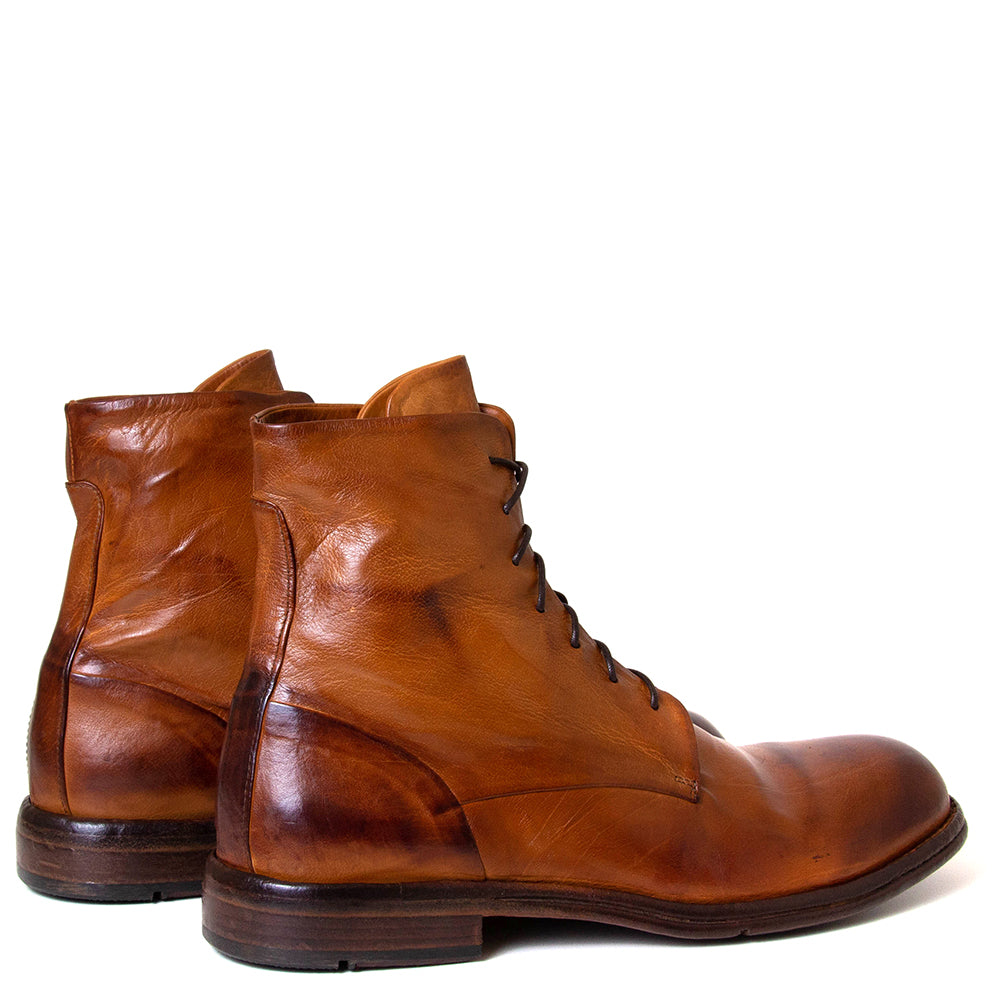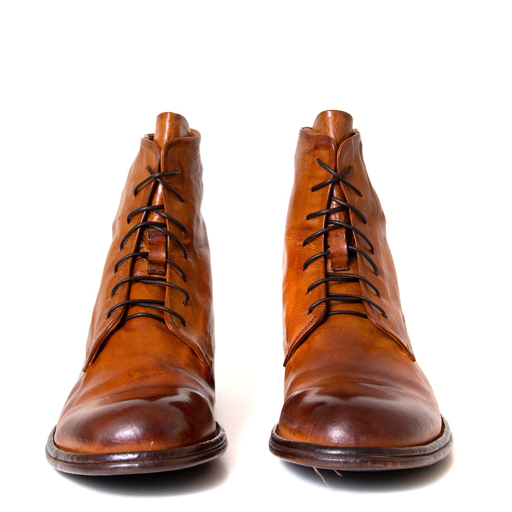 Nigel is a men’s leather-laced boot from Lemargo. Made in Italy, in premium leather. This boot is leather lined with a leather footbed. It has a 7-inch shaft and the leather sole stands on a 1⅛ inch heel with a durable anti-skid rubber heel tap and outsole. This shoe runs slightly large. If between sizes please choose the smaller size.