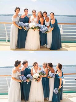Elegant Off-the-Shoulder Design: Show off your shoulders with this chic and flattering neckline, perfect for a modern bridesmaid look.