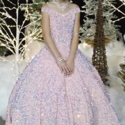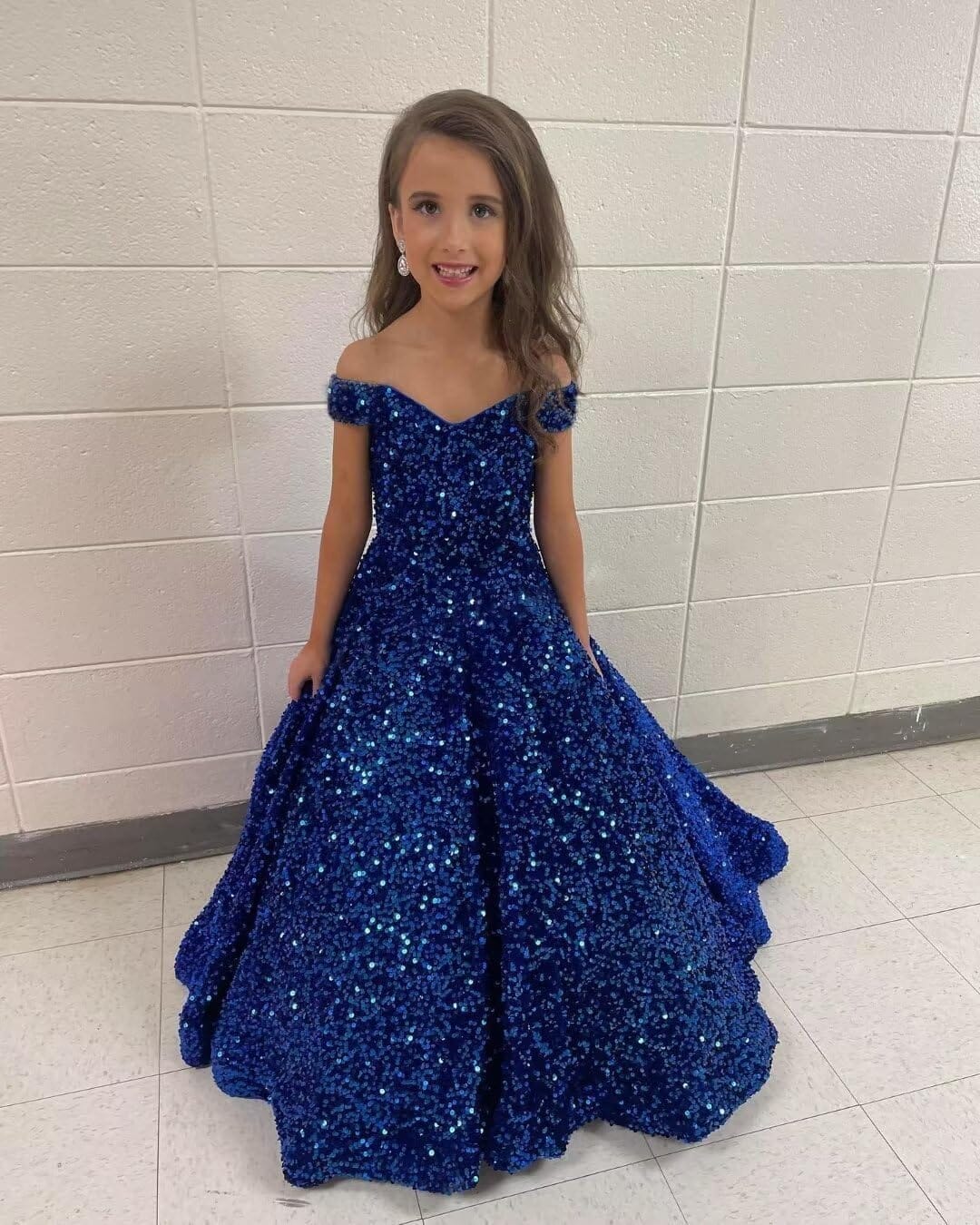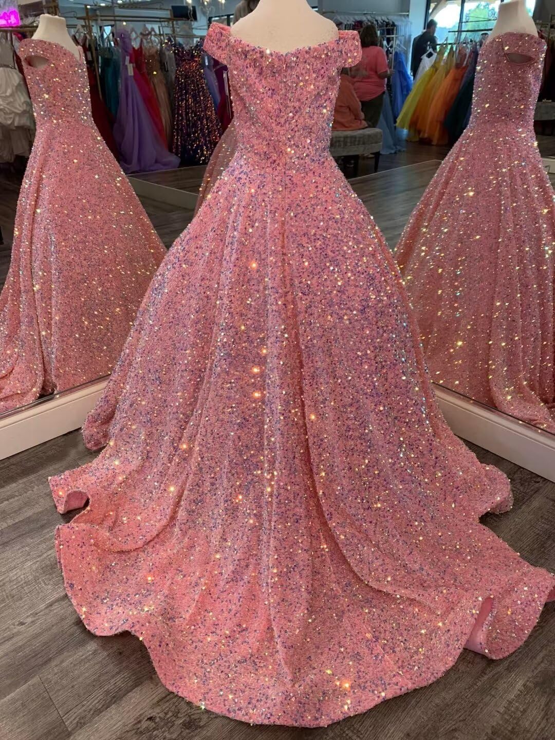 “ Dazzling Design: Off-the-shoulder neckline and a full, flowing ball gown silhouette create a magical princess look.