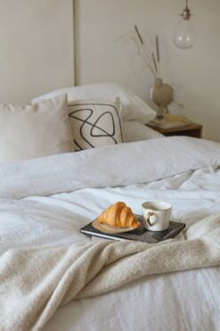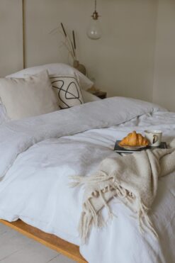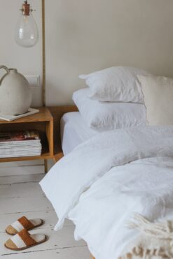 “ Experience Unparalleled Comfort: Drift into a peaceful slumber with our luxurious white linen bedding set. Crafted from premium, natural organic flax linen, this set offers exceptional breathability and softness for a truly restful night’s sleep.