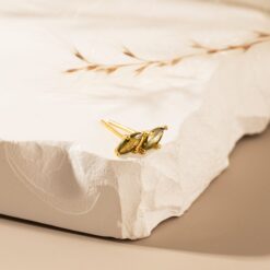 Marquise Gemstone Design: The unique marquise gemstone setting showcases the peridot’s elongated shape, maximizing its light reflection and creating a sophisticated, eye-catching design.