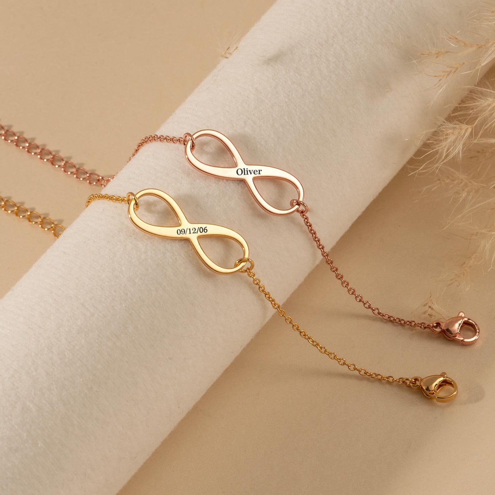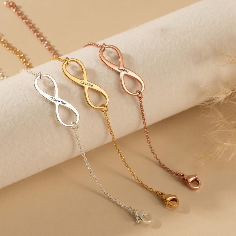 “ Personalized Infinity Design: Showcase your everlasting bond with our custom infinity name bracelet. Engrave two names, dates, or meaningful words within the elegant infinity symbol.