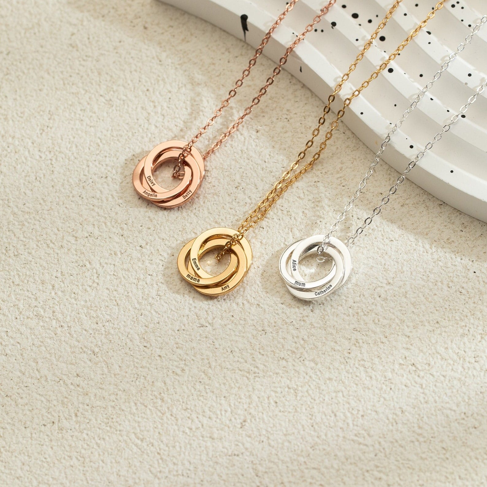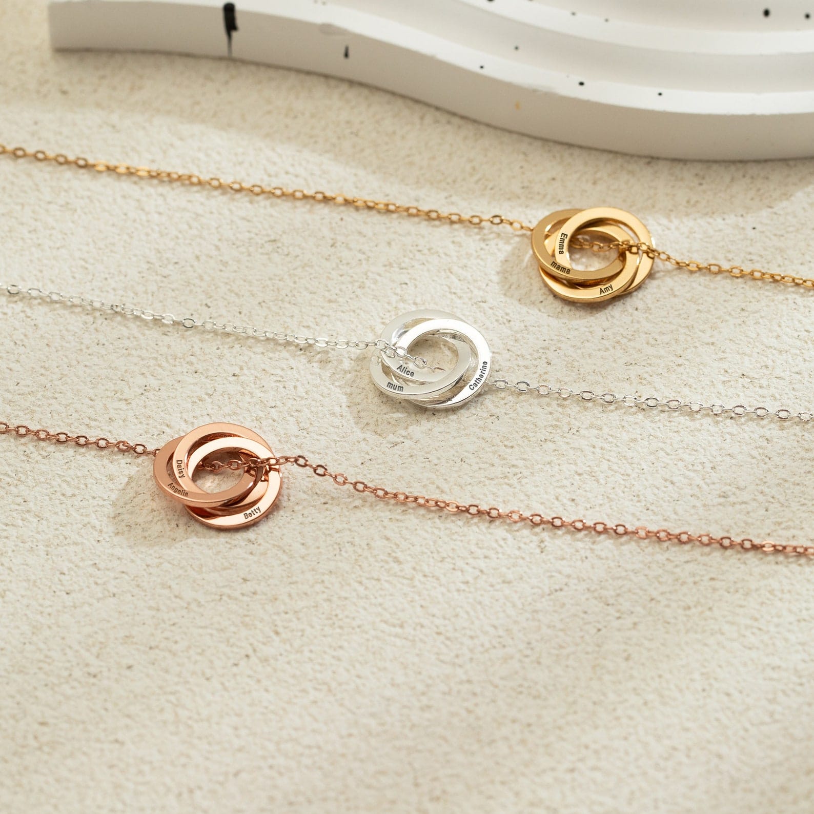 Elegant Multi-Circle Design: This necklace features interconnected circles, symbolizing the unbreakable bonds of family. The delicate yet sturdy design is perfect for everyday wear, adding a touch of personalized elegance to any outfit.