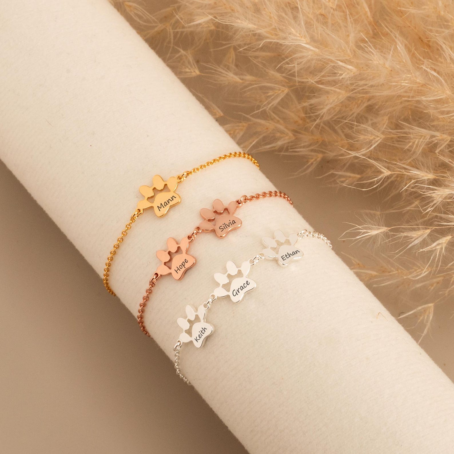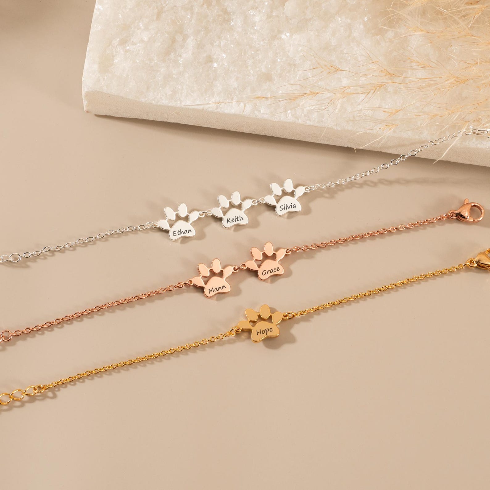 Crafted with high-quality materials, this delicate bracelet features a charming paw print design that can be custom engraved with your pet’s name, a special date, or a short message.
