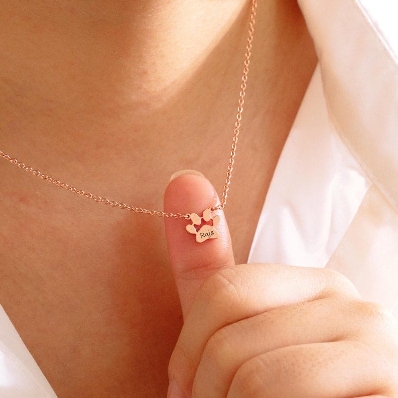 Order Yours Today: Create a personalized paw print name necklace that captures the essence of your furry friend. A timeless piece of jewelry that celebrates the love between you and your pet.