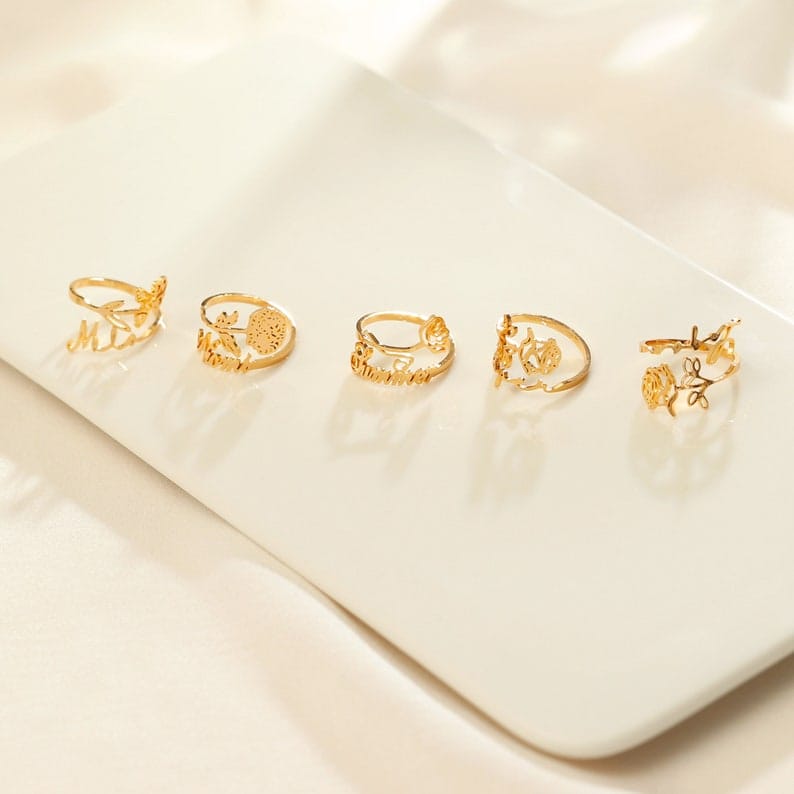 Birthflower Design: Choose your birthflower to be elegantly incorporated into the design, adding a personal and meaningful touch. A beautiful way to represent your birth month or a loved one’s.