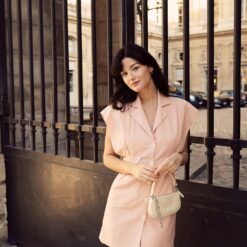 “ Effortless Parisian Chic: Embrace timeless elegance with this adorable pink linen mini dress, perfect for channeling your inner Parisian.