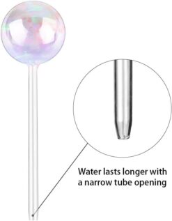 Effortless Plant Hydration: Keep your beloved plants thriving with our set of 2 iridescent rainbow gradient self-watering spikes. These elegant glass bulbs provide a consistent and reliable water supply, eliminating the guesswork of watering.