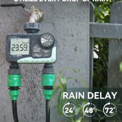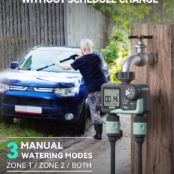 Dual-Zone Control: Independently manage watering schedules for two separate areas of your yard or garden, optimizing water usage for different plant needs.