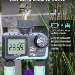 Smart Rain Delay: Integrated rain sensor technology automatically pauses your watering schedule when rain is detected, preventing overwatering and conserving water.