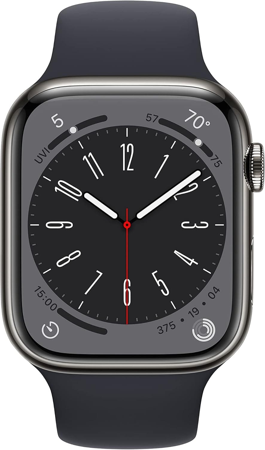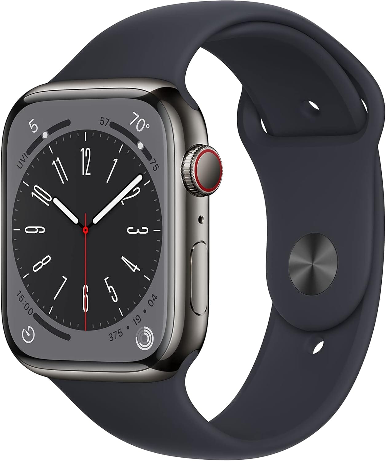 What’s Included: Apple Watch Series 8 (GPS + Cellular, 45mm), Midnight Sport Band (M/L), Magnetic Charging Cable.