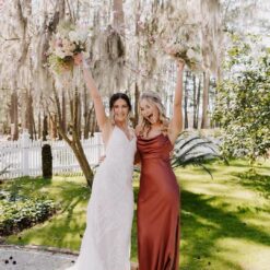Elegant Satin Fabric: Crafted from luxurious satin, this bridesmaid dress offers a smooth, lustrous finish that drapes beautifully and feels exquisite against the skin.