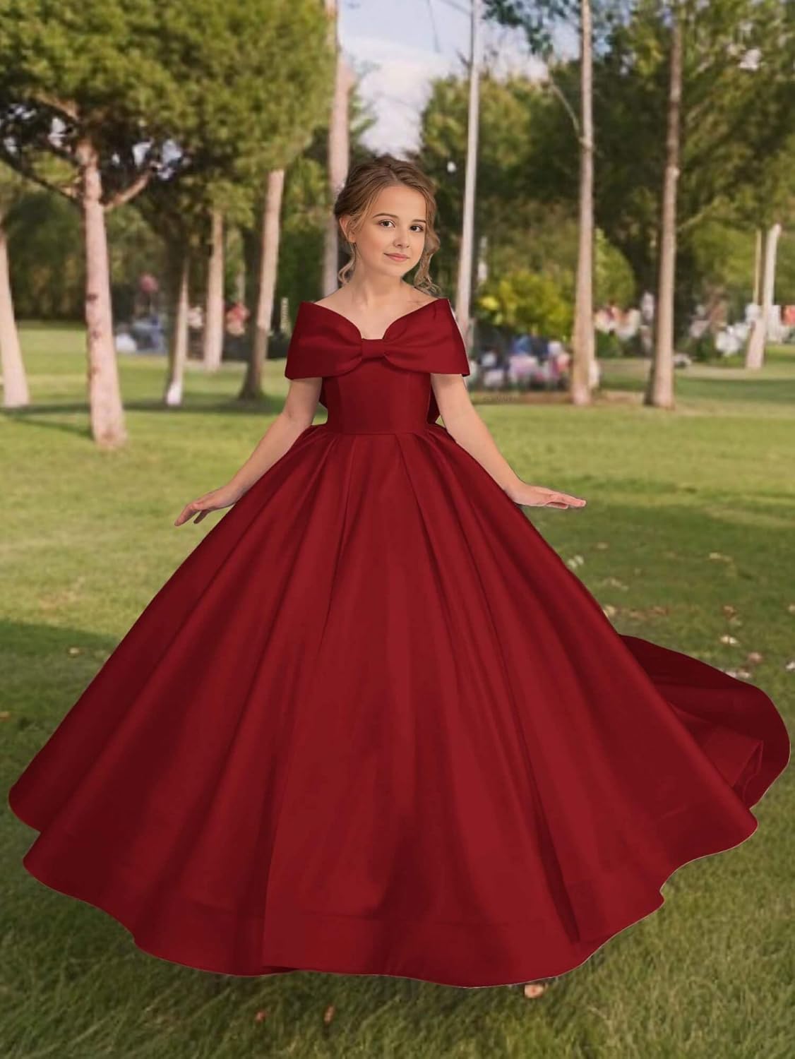Charming Off-Shoulder Design: The delicate off-shoulder neckline adds a touch of sophistication and charm, perfect for a flower girl, first communion, or pageant. It frames the face beautifully and creates a memorable look.