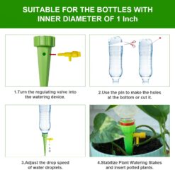 Simple Installation: No tools required! Just attach to a bottle, adjust the valve, and insert into the soil.