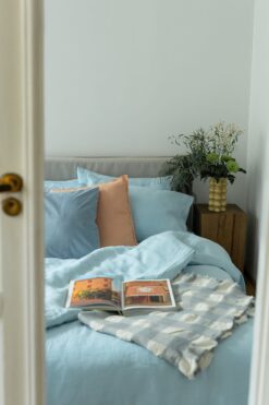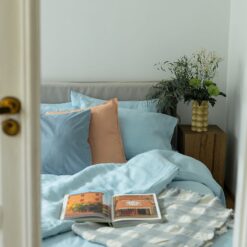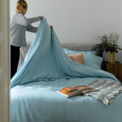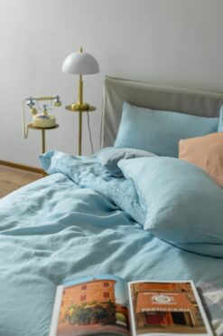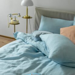 “ Drift into Dreamland with Sky Blue Linen: Experience the ultimate in comfort and style with our luxurious sky blue linen bed set. This set includes one duvet cover and two pillowcases, crafted from the finest 100% natural flax linen.