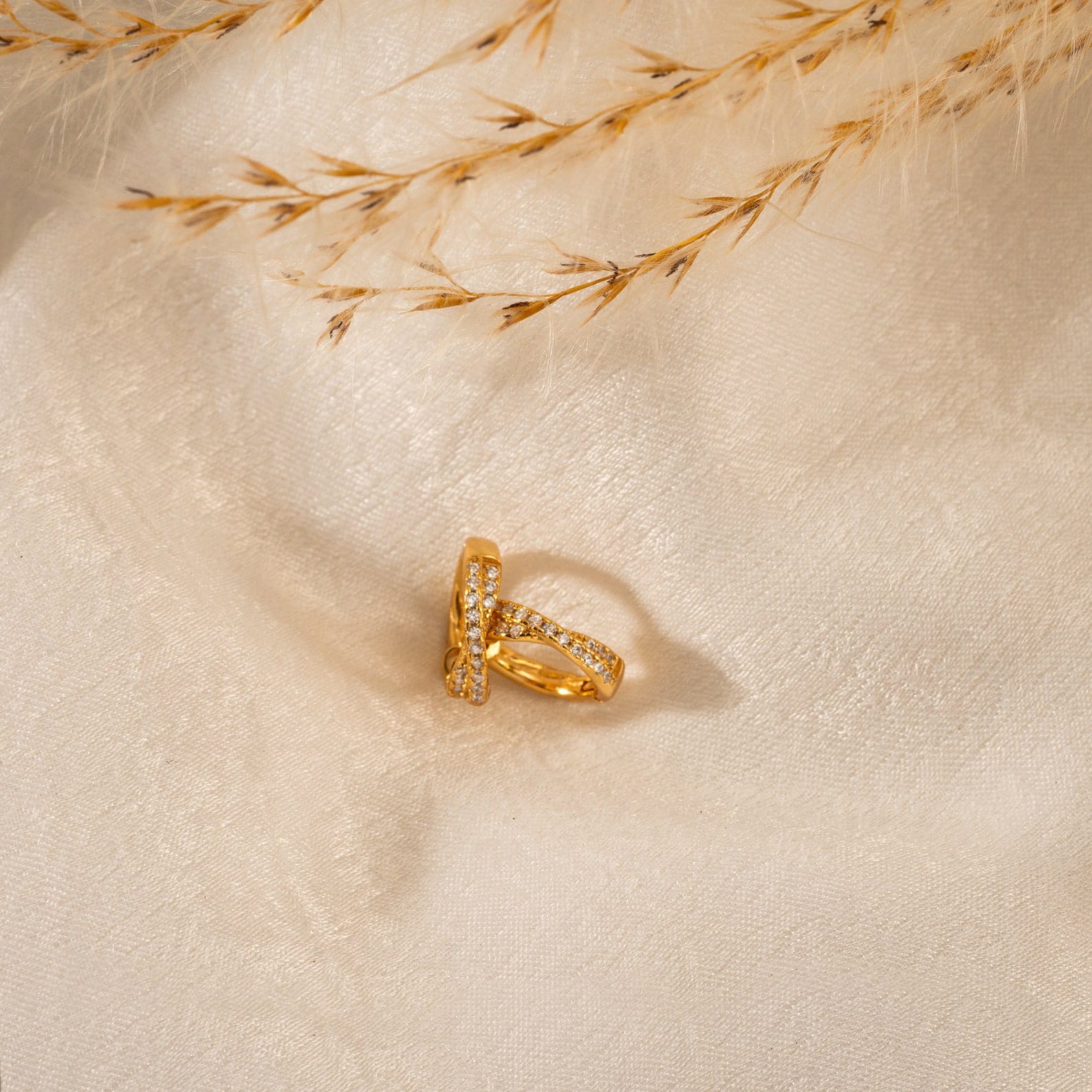 Sparkling Accent: Add a touch of glamour with our pave gold huggie earrings. These delicate huggies feature shimmering stones set in a warm gold tone, perfect for adding subtle sparkle to your ear stack.