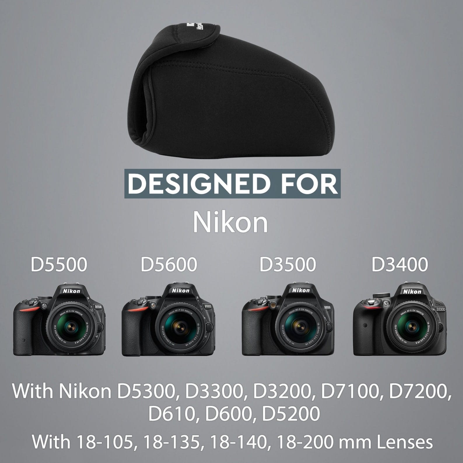 “ Ultimate Protection: Safeguard your Nikon D3500, D5600, D3400, D7200, D5500, D3300, D5300, D610, D7100, or D600 camera with this ultra-light neoprene camera bag. Shield your valuable equipment from dust, scratches, and light impacts.