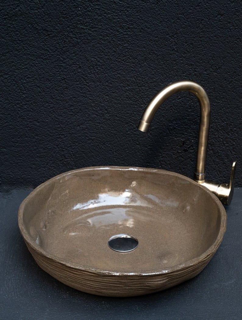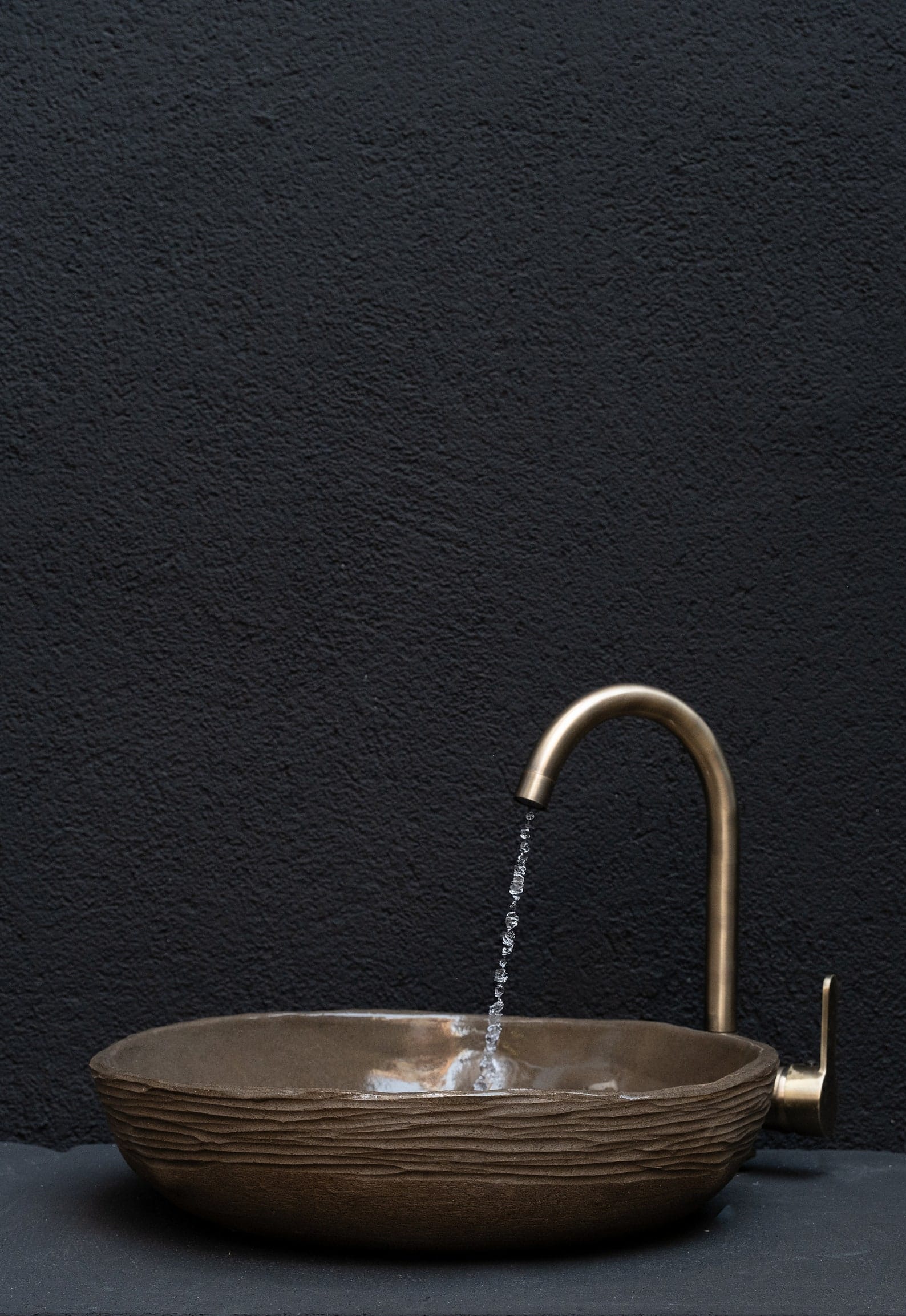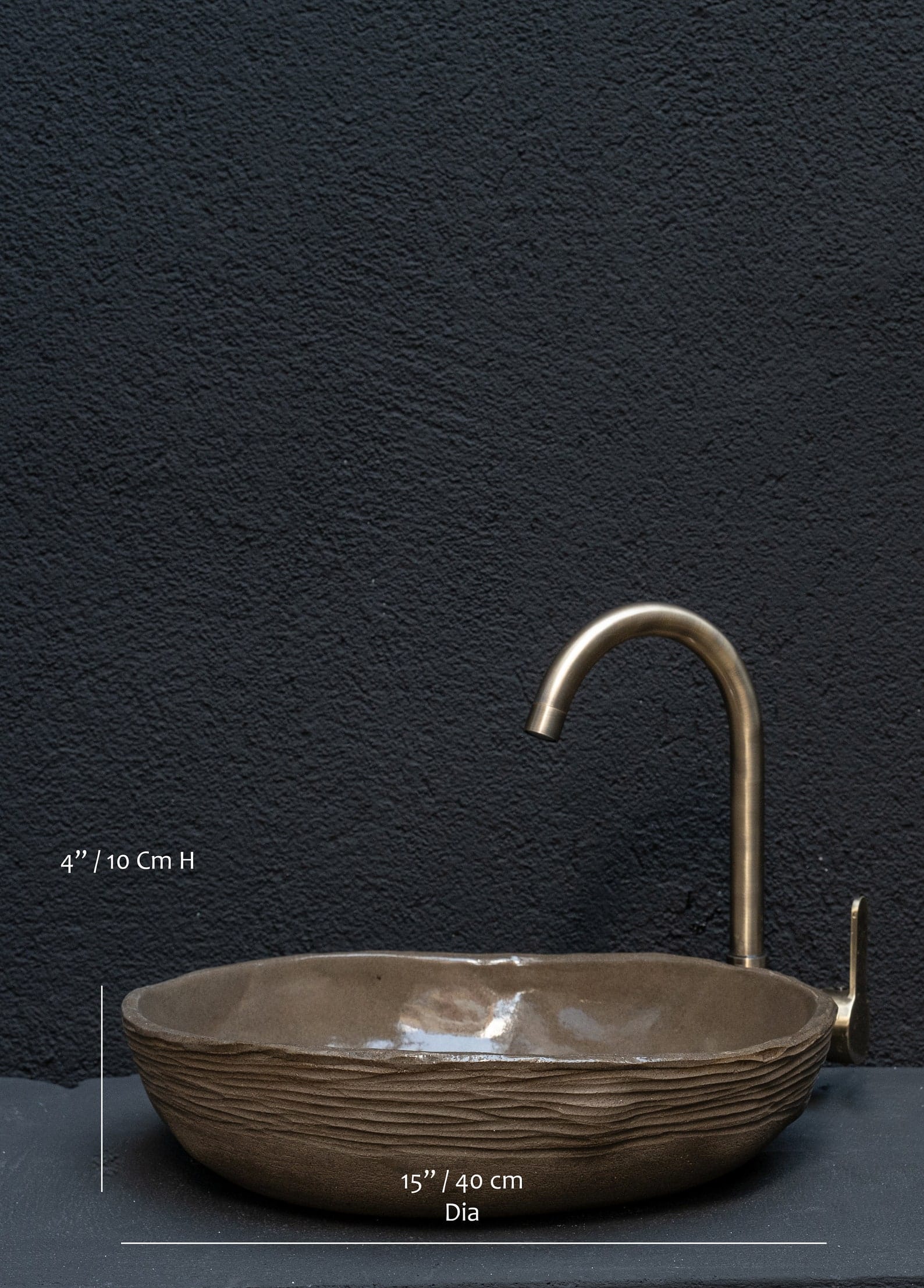 Artisan Crafted: Meticulously formed and finished by hand, this washbasin showcases the skill and artistry of ceramic craftsmanship. The rich brown hue complements the organic texture, adding warmth and character to your bathroom.