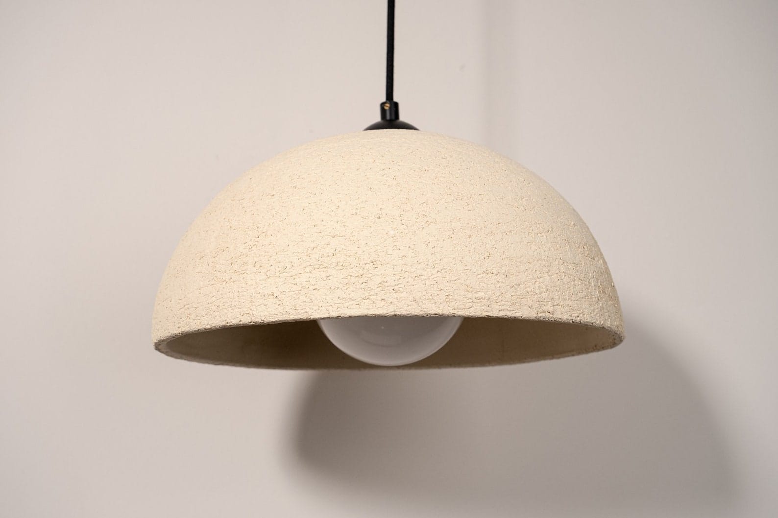 Artisan Crafted: Meticulously handmade by skilled artisans, this pendant light features a beige, natural-toned ceramic shade that exudes warmth and tranquility. The textured surface adds depth and visual interest to any space.