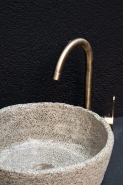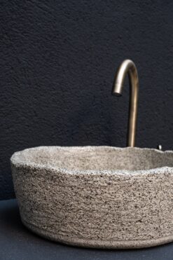 Wabi Sabi Ceramic Washbasin – Handmade Textured Farmhouse Sink – Natural Stone Look Bathroom Vessel Sink